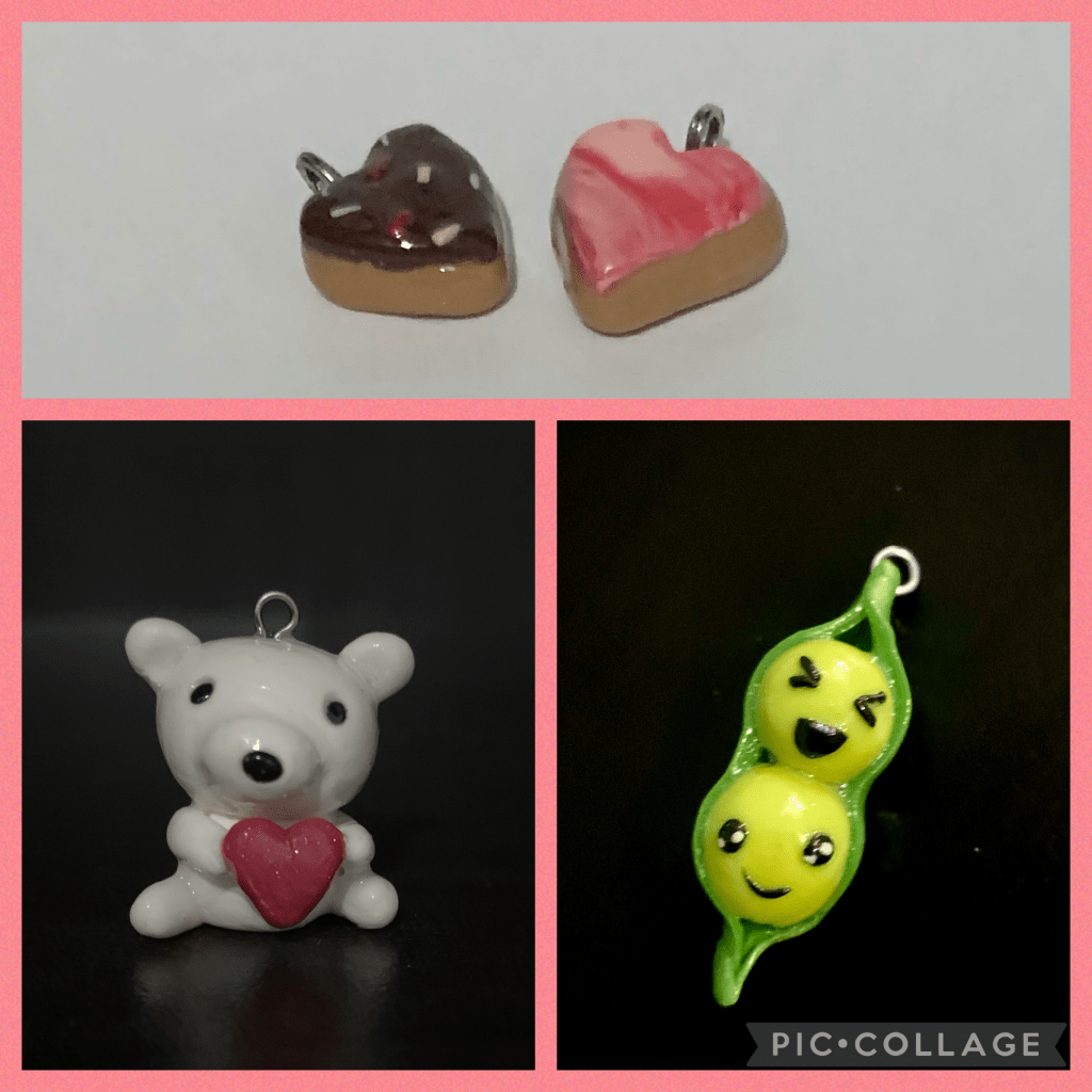 Hi! Even though it’s a little late, I still wanted to share my Valentine’s Day pieces from this week. At the top, I have heart shaped donuts that I made. On the bottom right, there are two peas in a pod, and on the bottom left, there’s a teddy bear. You can make these and give them as small gifts to your friends and loved ones. Hope you liked it!